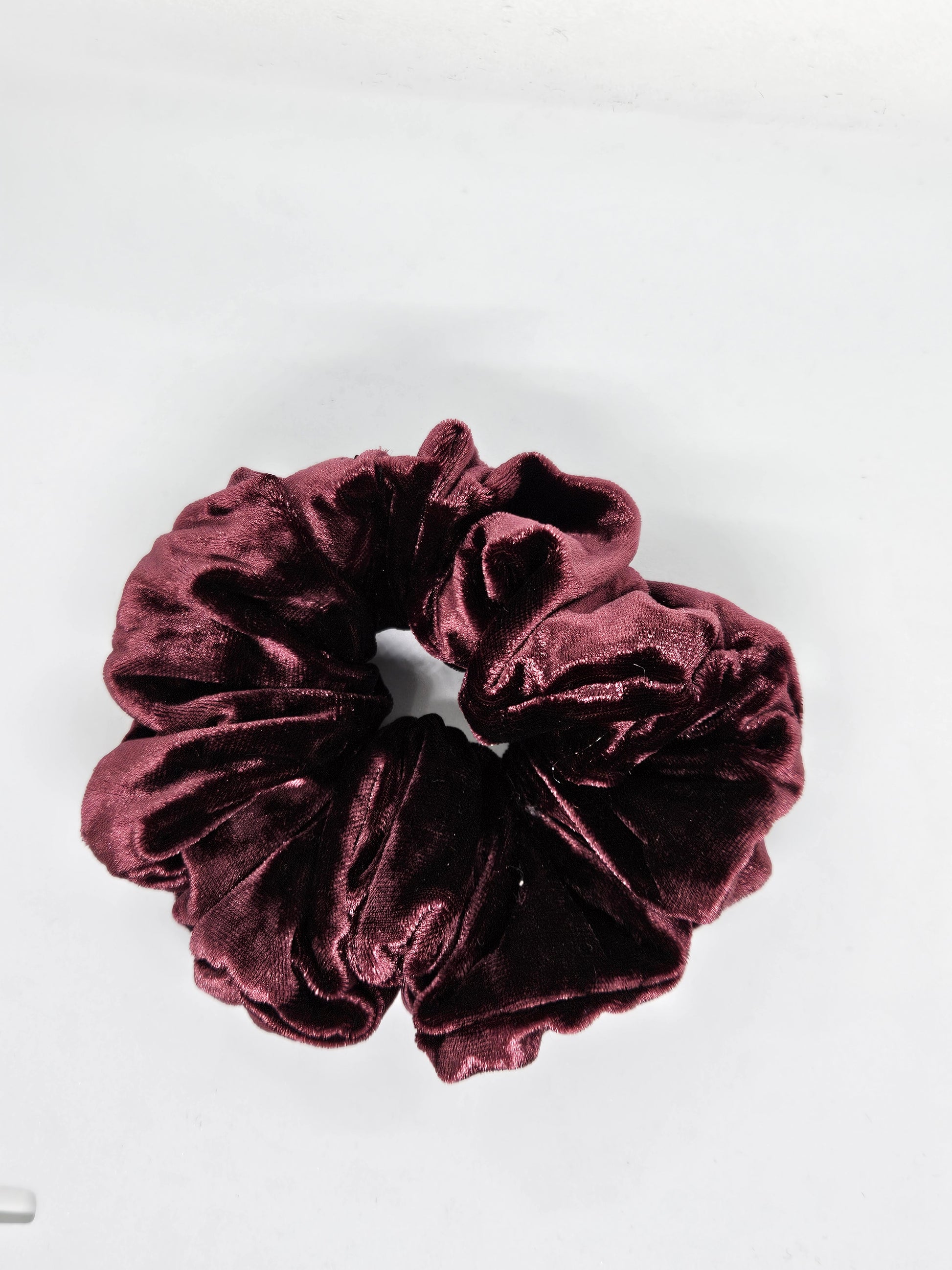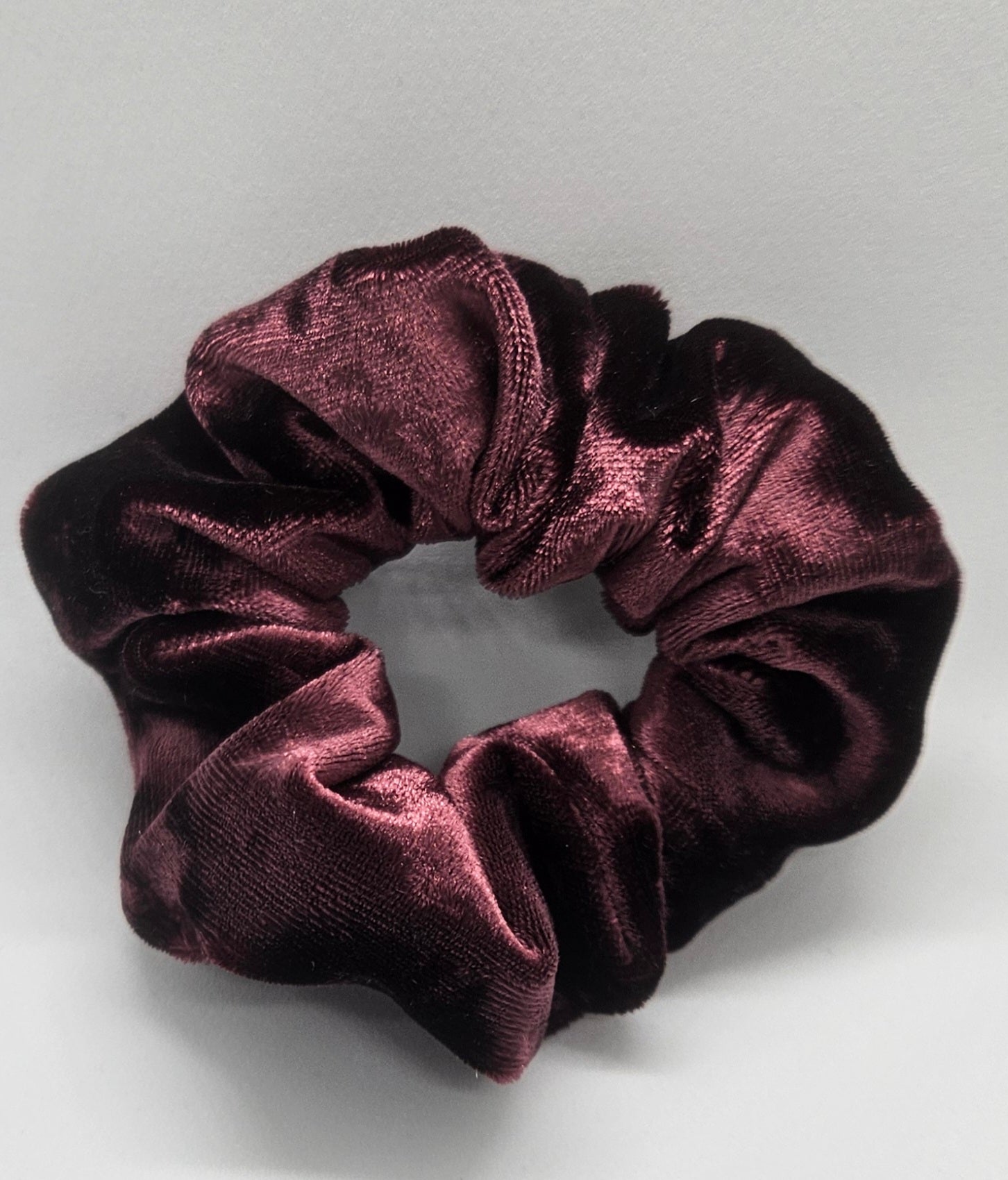 This elegant scrunchy is made of velour in a deep burgundy color. Offered in three sizes handmade for all hairtypes and hairstyles. Princess - 6.5 inches wide Queen - 7 inches wide Godess - 9 inches wide